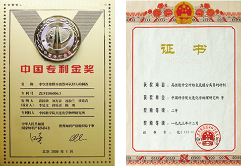●中空纤维系列超滤膜、微孔滤膜及组件的研制-----中科院科技进步二等奖