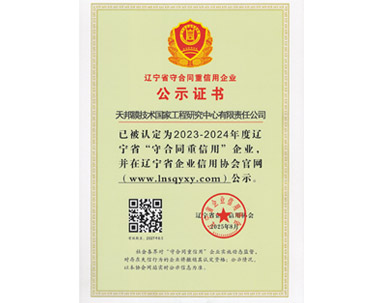 公司荣获2023-2024年度辽宁省守合同重信用企业