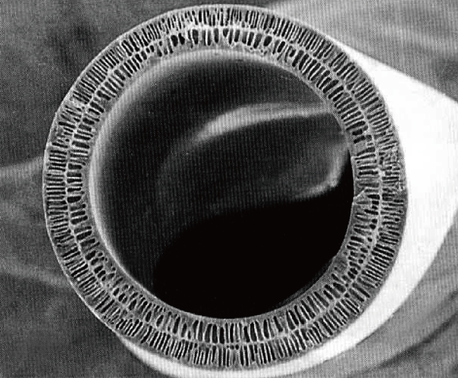 ● 双皮层结构、孔径分布窄,膜丝分离性能优异;