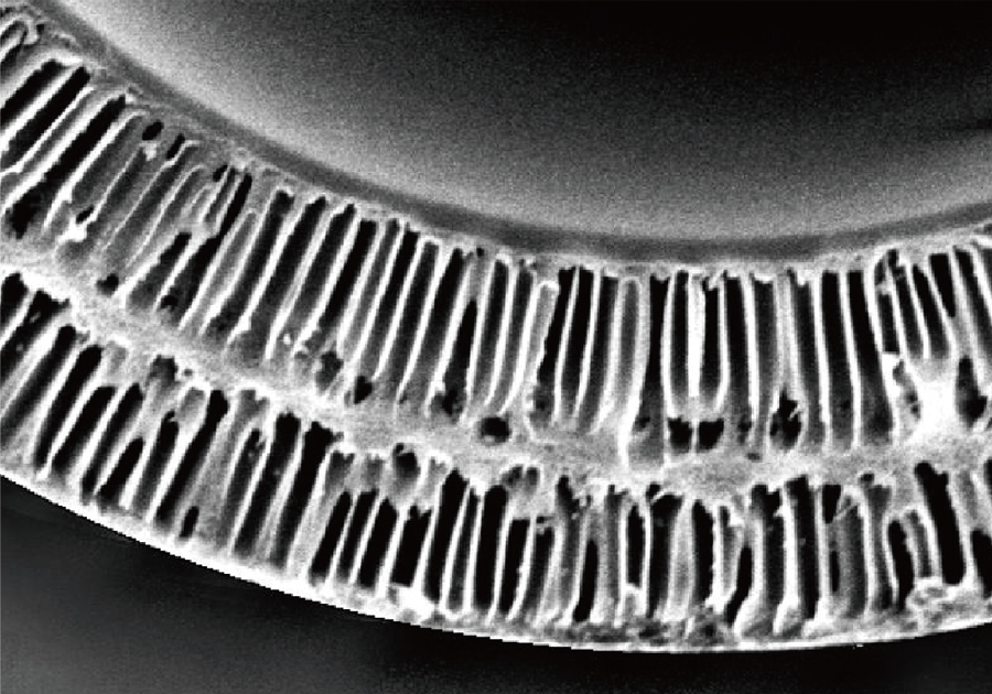 ● TBM超滤膜是典型的双排指状孔结构双皮层中空纤维膜;