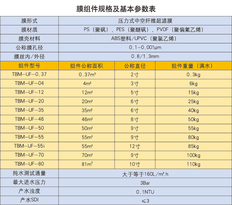 TBM可以提供多种规格和型号的超滤膜元件,能适应各种环境、各种规模的水处理项目。